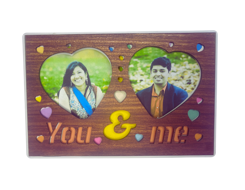This exquisite LED frame captures the essence of love and togetherness with the words “You and Me” personalized through sublimation printing. The vibrant and enduring colors bring the design to life, while the built-in LED lights create a captivating glow. It serves as a beautiful centerpiece for any space, adding warmth and romance to your home decor. Whether as a gift for your partner or a meaningful addition to your own collection, our You and Me Sublimation Customized LED Frame is a perfect way to celebrate your special bond. Illuminate your love story with this enchanting frame and create memories that will last a lifetime.